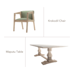 Create unforgettable moments around our Maputu Dining Table, where rustic charm meets modern elegance. Paired with luxurious Krokodil chairs, every meal becomes warm, stylish, and inviting.