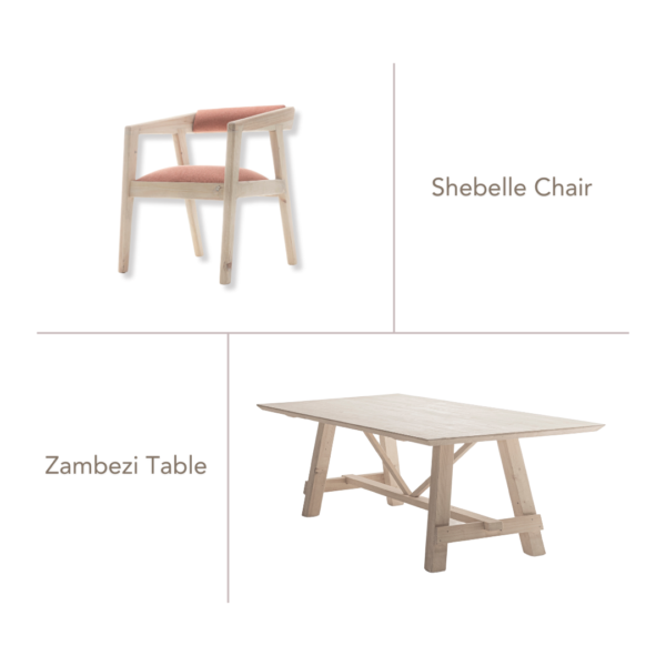 Transform every meal into a moment of warmth and style with our modern rustic dining sets. Modern Zambezi Dining Table and luxurious Shebelle chairs create a cozy, inviting space for family and friends.